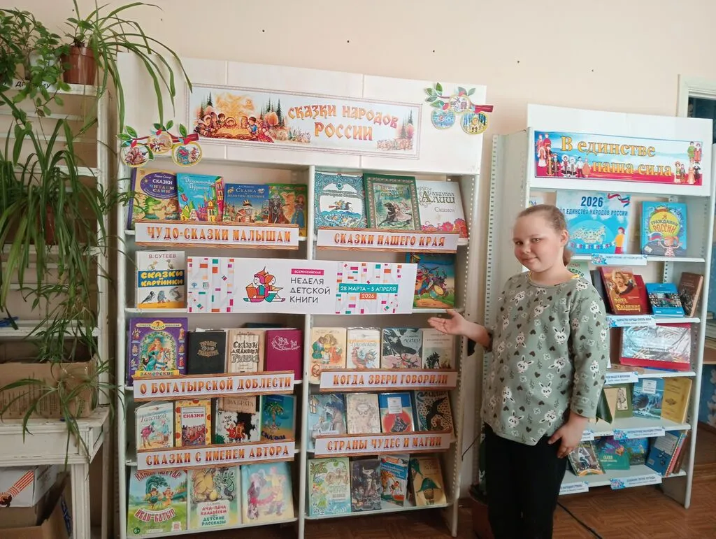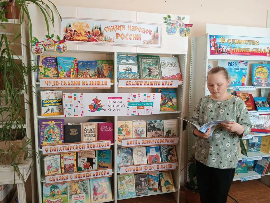 В рамках Недели детской книги в Пролей-Кашинской поселенческой библиотеке проведён обзор книжной выставки «Сказки народов России». Присутствующие подчеркнули для себя уникальность устного народного творчества разных национальностей страны — от карельских былинок до чувашских загадок и башкирских преданий. Посетители с интересом рассматривали книжные экспонаты, обращали внимание на особенности изображений, символику, характерную для каждой этнической группы. Особенно запомнились сказочные образы — мудрые лешие, хитрые лешаки, добрые духи природы, которые рассказывают о вере людей в гармонию с миром. Ребята активно делились своими впечатлениями, сравнивали персонажей из сказок разных народов, находили общее и различия. Выставка стала не просто источником удовольствия от чтения, но и пространством для культурного диалога, где каждый ребёнок почувствовал себя частью единого многонационального мира.